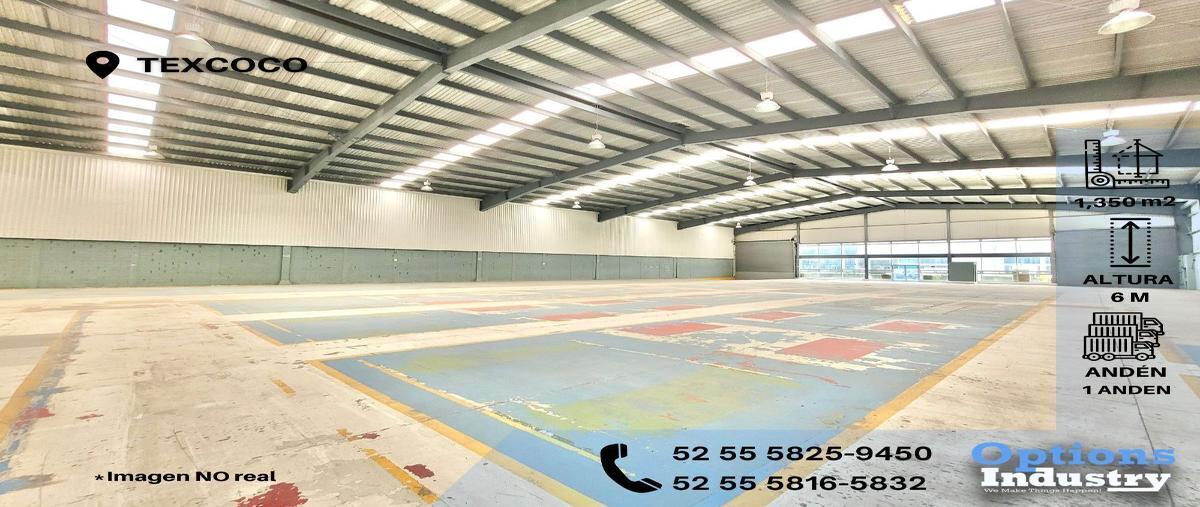 Rent industrial warehouse now in texcoco br13510 available space: 1,350 m2 total footage of the industrial warehouse: 1,350 m2 office or mezzanine footage:- minimum height of the industrial warehouse:...