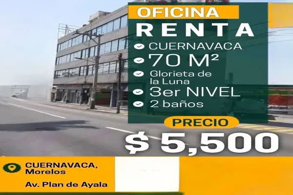 Nocnok id: mx24-bl3785. cuernavaca av de ayala $5,500 *70 metros *glorieta de la luna *3er nivel *2 baños