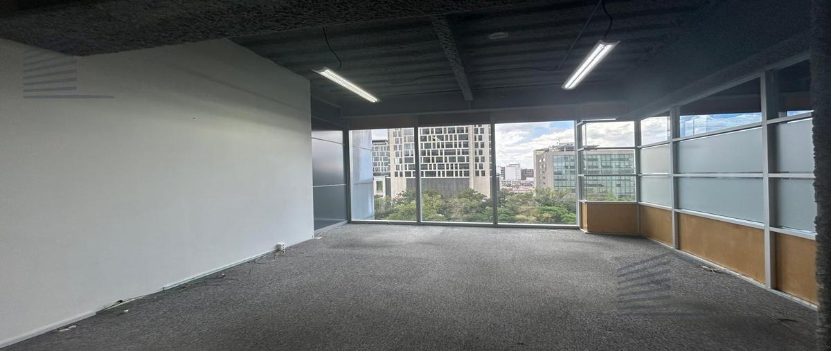 Esta oficina en alquiler cuenta con 135 m2 de espacio rentable, ubicada en el piso 8 de un edificio de 27 pisos. la oficina incluye; 3 privados, área de trabajo abierta y 8 servicios sanitarios, con b...