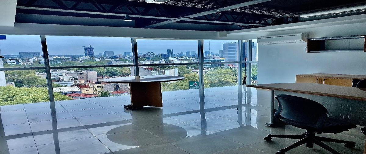 Excelente oficina amueblada de 303 m2 en renta, cuenta con oficina principal y sala de juntas, todo lo demás es área abierta con estaciones de trabajo; para esta oficina están asignados 2 lugares de e...