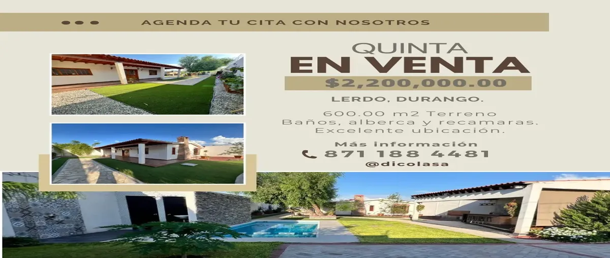 Nocnok id: mx25-ja10001. quinta en venta? ?quinta con alberca en venta en ciudad lerdo, durango.? hermosa quinta en venta en villa juárez, lerdo. cuenta con casa habitación de 98 m2 que se compone d...