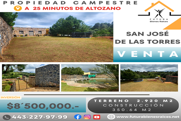 Propiedad campestre en venta! san josé de las torres, a 25 minutos de altozano, morelia. rodéate de naturaleza, paz y tranquilidad disfrutando con familia y amigos! terreno 2,920 m2 construcción 350....