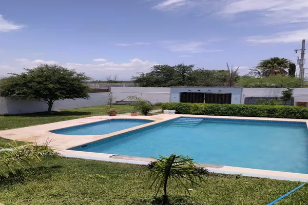 Nocnok id: nn-gsi544. quinta de dos plantas, cuenta con dos habitaciones muy grandes, área de asador con mesa de trabajo y tarja, alberca de 56 mts2 y portón de dos hojas, terreno completamente bardea...