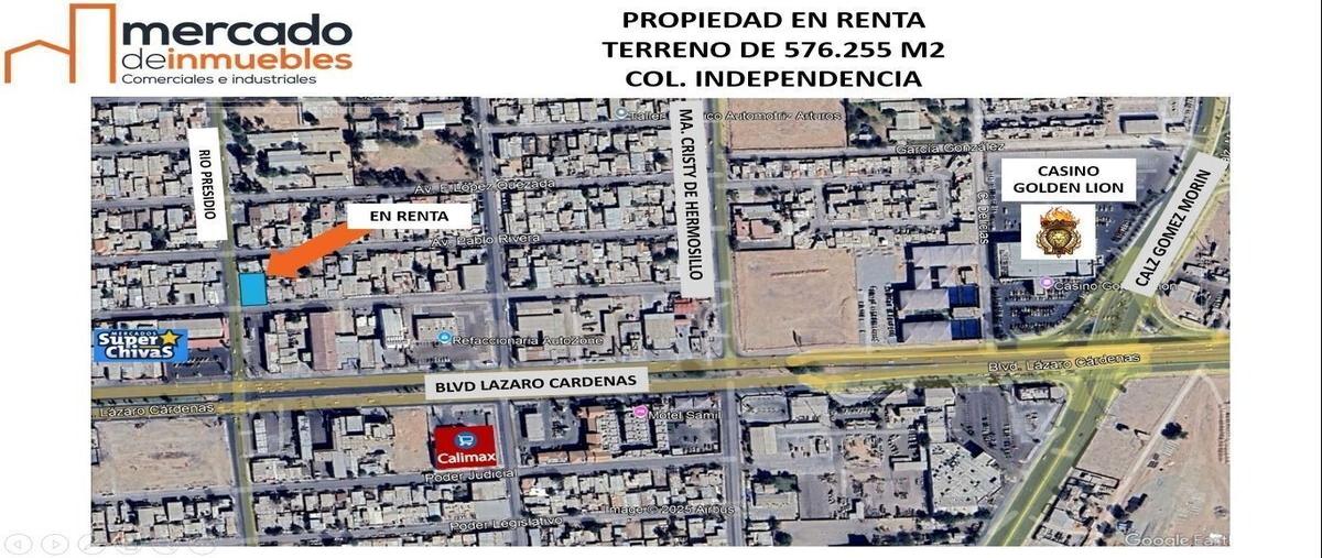 ‼ en renta terreno comercial en esquina de 576 m2 ‼ sobre rio presidio esquina con av. alejandro cital, col. independencia ✅a una cuadra de lázaro cárdenas ideal para establecer comercios o marcas 576...