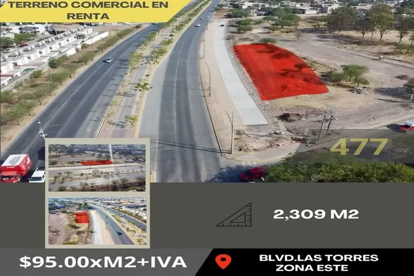 Nocnok id: mx25-fa10205. terreno en renta ?sobre blvd las torres con permiso para gasolinera ?2,309 m2 (81 mts de frente) $95 x m2 + iva
