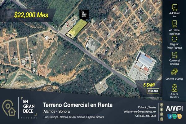 Terreno en renta frente a carretera - uso comercial o industrial en alamos, sonora