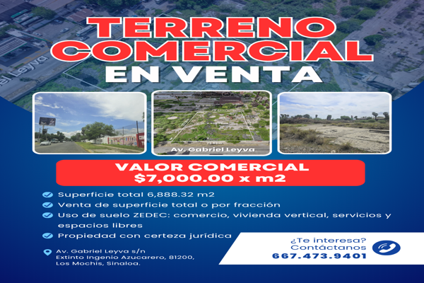 Predio comercial con ubicación estratégica en el corazón urbano de los mochis. con una superficie de 6,888 m2 y uso de suelo zedec (zona de desarrollo controlado), este predio se localiza dentro d...