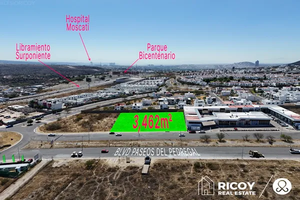 Nocnok id: nn-gve767. terreno comercial en venta en sobre avenida principal en real de juriquilla a tan solo unos pasos de la glorieta del conejo en la entrada principal hacia gran preserve juriquilla...