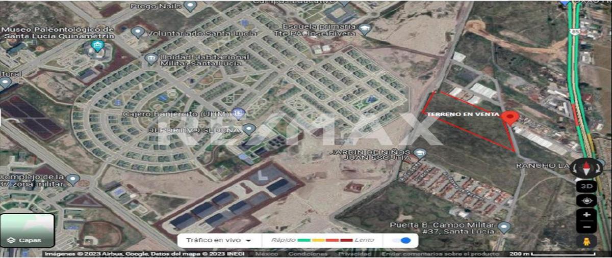 Excelente terreno de uso comercial y habitacional (uso de suelo cu125b), sin construcciones y de forma irregular. ubicado a un costado de la base militar de santa lucía y a 20 minutos del acceso prin...