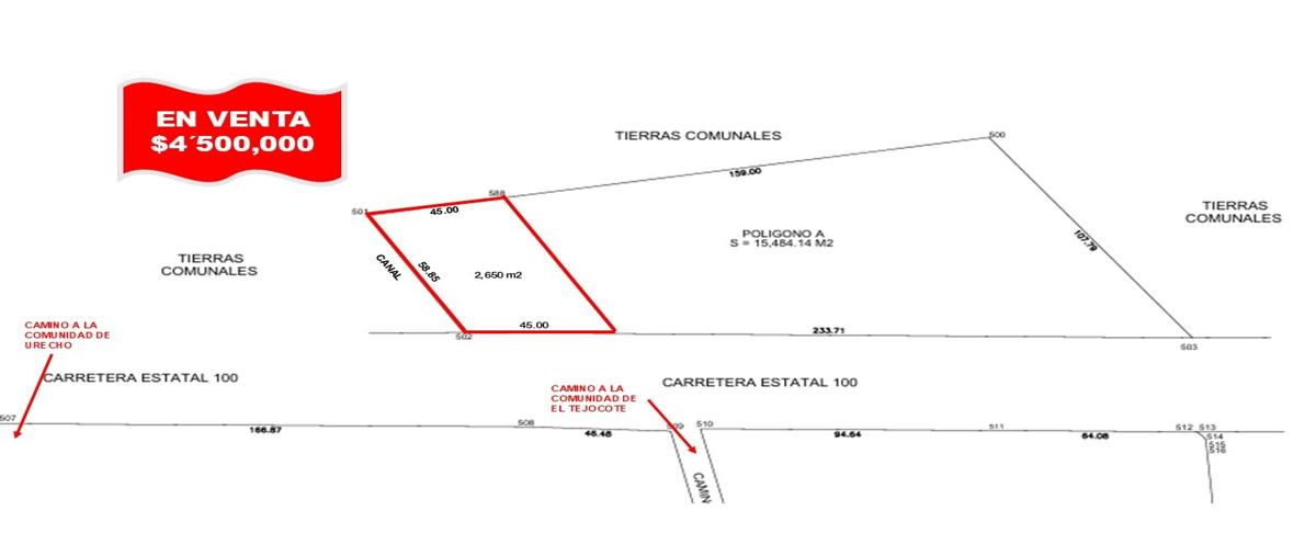 Terreno en venta en urecho, colón, querétaro a pie de carretera, 2,650m2 disponibles. 45 metros de frente y 58 de fondo cerca de la gasolinera de pemex y oxxo "el gallo" a unos metros del puente d...