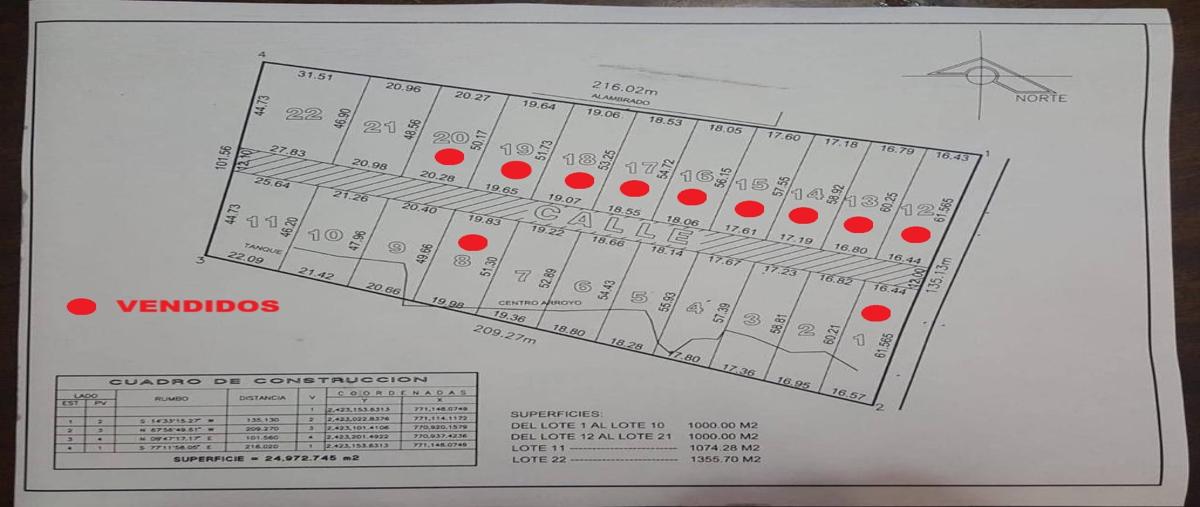 Privada con 22 terrenos de 1000 m2 o más 11 terrenos disponibles: no 2 de 60 x 16 mts no 3 de 58 x 17 mts no 4 de 57 x 17 mts no 5 de 55 x 18 mts no 6 de 54 x 18 mts no ...