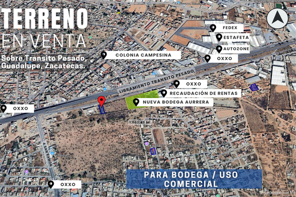 Terreno en venta con alto potencial comercial, ubicado sobre el libramiento tránsito pesado en guadalupe, zacatecas. esta propiedad destaca por su excelente exposición vehicular, al estar sobre una de...