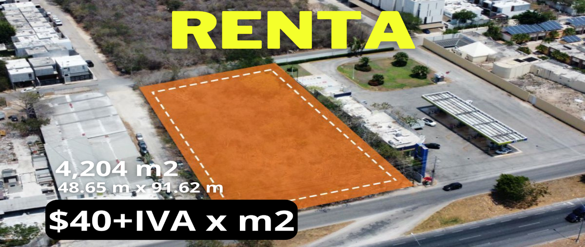 En renta increíble terreno con doble esquina ubicado sobre periferico norte de mérida, el terreno cuenta con un total de 4,204 m2, 48 de frente x 91 de fondo. dos muros de 91 de largo por 3 ...