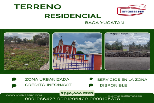 ¡gran oportunidad en baca, yucatán! terreno residencial + infonavit terreno residencial de 740 m2 (20m de frente x 37m de fondo) en la hermosa villa de baca. a solo 20 minutos de mérida y 25 minutos ...