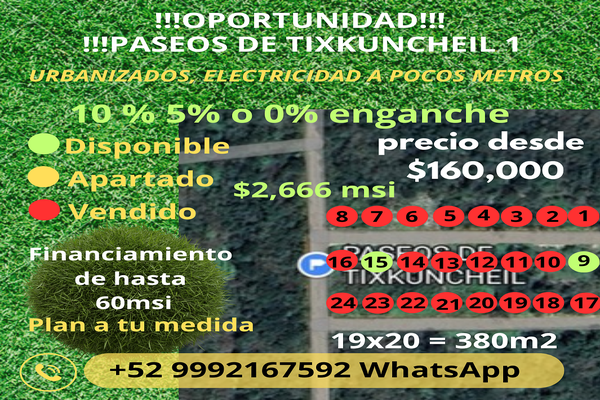 Excelentes terrenos tixkuyncheil, baca yucatán, ubicacion privilegiada. 25 minutos de mérida, a pocos minutos de motul. 20 minutos de telchac puerto, rodeado de varios desarrollos que le dan su alta p...