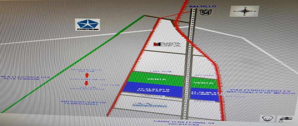 Terrenos de 24, 43 y 77 hectáreas colindante con la carretera a zacatecas a 1 kilómetros aprox del entronque a derramadero y a 3 kilómetros de la planta de chrysler, con agua, línea de electricidad ...