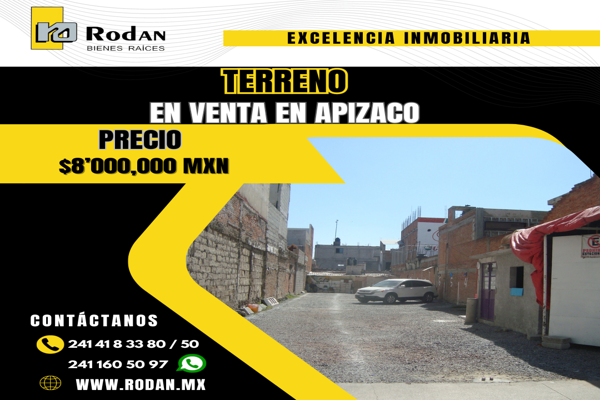 *640. terreno en venta sobre av. principal en el centro de apizaco apizaco, centro, tlaxcala. terreno: 380 m2 precio de venta: $11’000,000 contáctanos vía whatsapp y conoce más de nuestras propiedade...