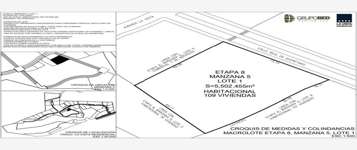 Nocnok id: mx21-jx4746. macrolote habitacional multifamiliar con densidad para condominio vertical de hasta 109 viviendas, 5,502. 73 metros lineales de frente a avenida principal (ver plano). fac...