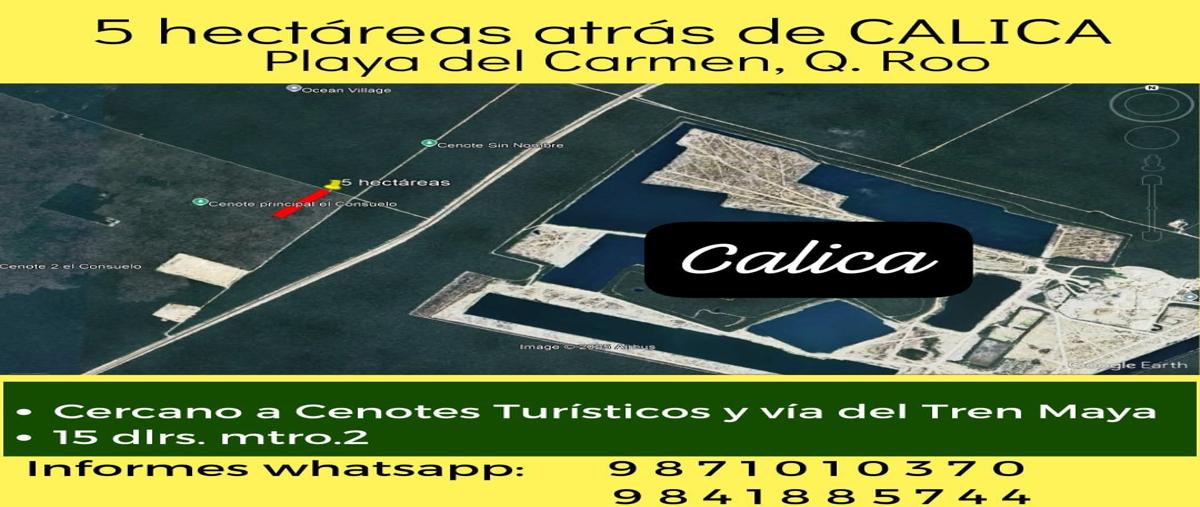 Superficie: 50 mil metros cuadrados cercano a cenotes turísticos. ubicación: a espaldas de calica uso de suelo: habitacional h3 situación legal: propiedad privada. escriturado. libre de todo gravam...
