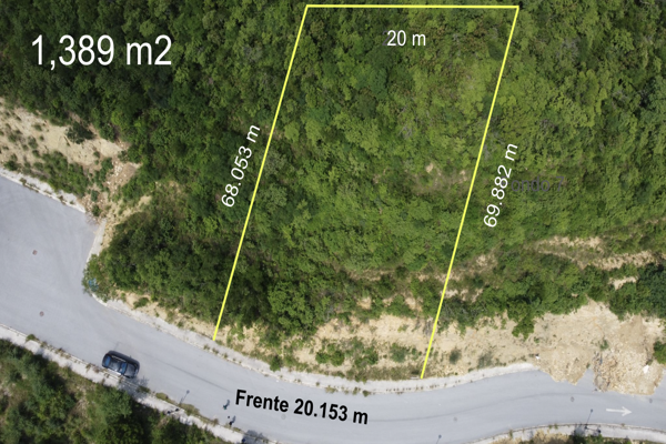 Terreno en venta, santa isabel ,zona carretera nacional monterrey n,l. terreno ascendente, 1,389 m2, 20m de frente, col. privada con hermosas casas de modernos diseños contemporáneos. amenidades,...