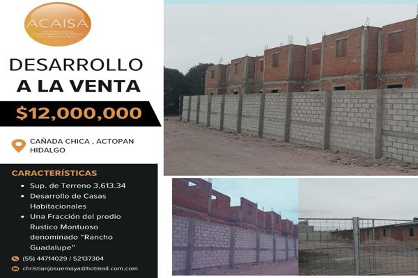 Desarrollo a la venta en cañada chica actopan hidalgo sup. de terreno 3,613, desarrollo de casa habitacionales, una fraccion del predio rustico montuoso denominado "rancho guadalupe "
