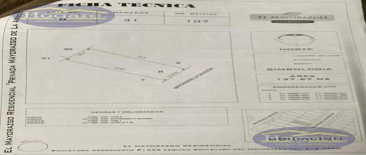 Terreno habitacionalVenta$940,479 MXN , Col. El Mayorazgo Residencial, León, Guanajuato, México, C.P. 37547, ID: 29987127 140 m2