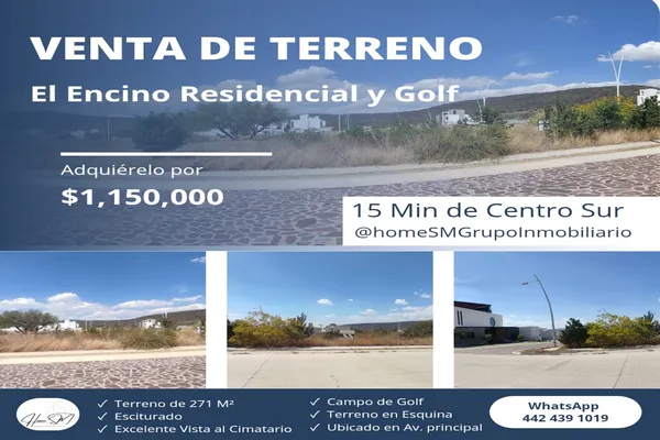 Nocnok id: mx25-uu10010. descripción fraccionamiento el encino residencial &campo de golf (sendero del nogal) terreno habitacional. superficie: 271mts2. excelente ubicación. amenidades alberca vig...