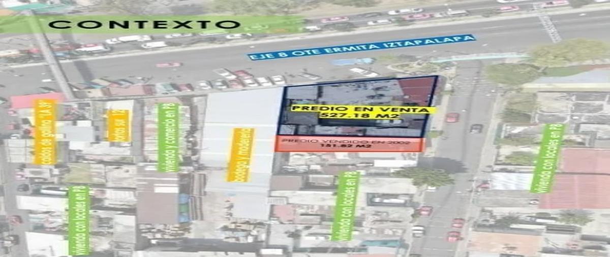 Venta de terreno comercial de 527 mts en iztapalapa, excelente ubicación, a una calle del eje 6 , zona con alta afluencia vehicular y peatonal, rodeado de comercio. rodeado de importantes vías de acce...