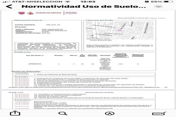 Terreno en venta excelente ubicacion a media cuadra de av. patriotismo y av. san antonio delegacion benito juarez, con excelente uso de suelo terreno para desarrollo habitacional, con uso de suelo h/4...