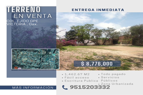 Terreno habitacionalVenta$8,776,020 MXNFelipe Angeles #snInt. sn, Col. Ejido Guadalupe Victoria, Oaxaca de Juárez, Oaxaca, México, C.P. 68280, ID: 29162422 1462 m2