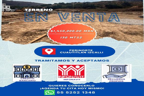 Terreno en venta en perinorte, cuautitlán izcalli $1,450,000 mxn 130 mts2. 6 de frente * 20 mts de ancho excelente oportunidad de inversión. tramitamos y aceptamos crédito bancario, infonavit ...