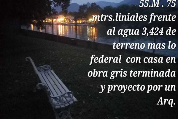 Ofrezco en venta terreno exclusivo dentro de colonia privada con solo 7 lotes, el terreno consta de una construccion que se puede adquirir en su totalidad o dividido. 73 mts lineales frente al agua 3,...
