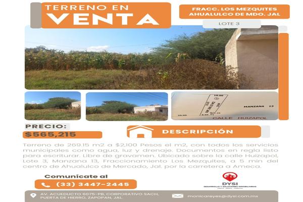 Últimos terrenos en venta, en el fraccionamiento los mezquites, a $2,100 m2. desde $442,470 pesos hasta $637,560 pesos, ubicado sobre la carretera a ameca y las vías del tren (vías verdes) a 5 m...