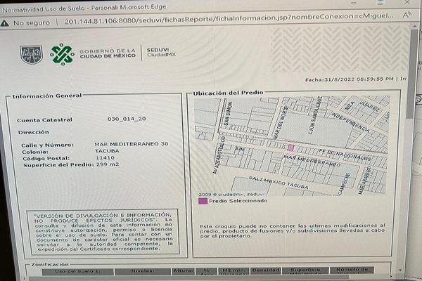 Terreno en venta en calle mar mediterráneo, col. tacuba. tiene 315 m2. * uso de suelo: 1 cuenta catastral: 030/014/20 * suelo habitación habitación al comercio en planta baja * niveles: 3 * porcentaje...