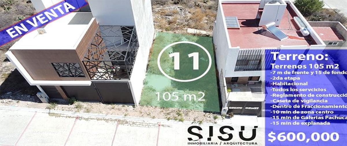 Terreno habitacionalVenta$600,000 MXNCampestre Villas del Álamo, Pachuca, Hgo. #s/n, Col. Pachuquilla, Mineral de la Reforma, Hidalgo, México, C.P. 42180, ID: 30361258 120 m2