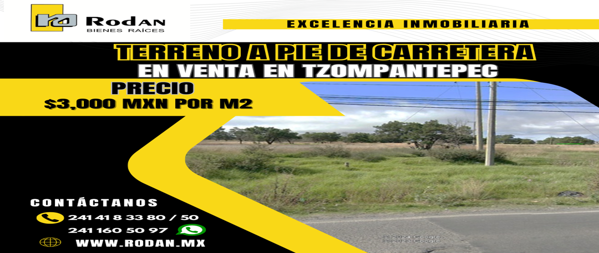 *1135. terreno a pie de carretera, en venta en tzompantepec tzompantepec, san andres ahuashuatepec, tlaxcala. terreno: 48,132 m2 precio de venta por m2: $3,000 contáctanos vía whatsapp y conoce más d...
