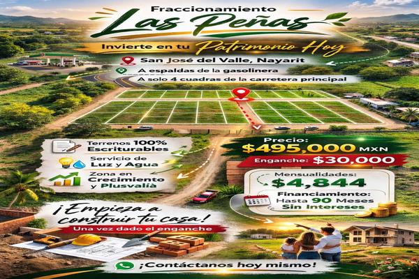 ¡invierte hoy en tu patrimonio! 120 terrenos disponibles en el fracc. las peñas san josé, bahía de banderas, nayarit ¡excelente ubicación! características principales: 100% escriturables contaran con ...