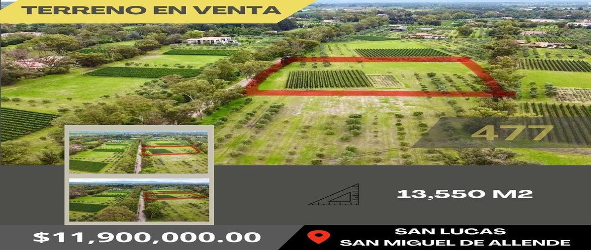 Terreno en venta san miguel de allende (san lucas)13,550 m2 •ideal para cultivo de uva y habitacional •casa club •canchas de pádel •canchas de polo •hípico •vinícola totalmente equipada $11,900,000...