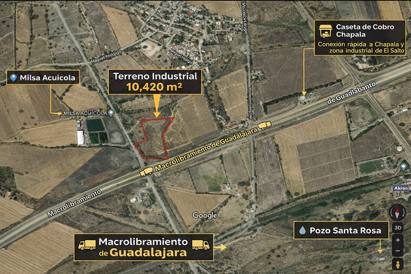 Terreno de 10,420 m² con uso de suelo mixto ubicado en ejido de santa rosa, ixtlahuacán de los membrillos, con acceso estratégico pegado al macrolibramiento y ruta de fácil entrada y salida para trans...