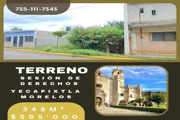 Nocnok id: nn-ff1000134. terreno en venta en yecapixtla morelos. $595,000.°° sesion de derechos excelente ubicacion a solo 30m de av. principal a 3 minutos del centro calles pavimentada colonia...