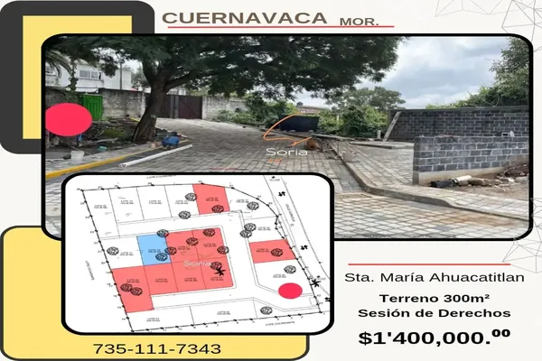 Nocnok id: nn-gwm085. terreno en cuernavaca morelos sesion de derechos oportunidad de terreno terreno en santa maría ahuacatitlán ? dentro de fraccionamiento. ? 300 m² de terreno? dentro de fraccion...