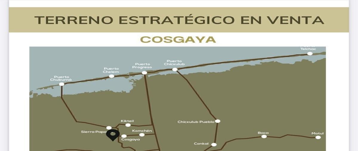 Terreno en venta en cosgaya a minutos de komchen cosgaya se encuentra a 25 minutos de la ciudad de merida y a 30 minutos del puerto progreso . uso de suelo : - residencial - comercial medidas : frente...