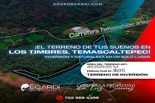 terreno en los timbres ? ubicación: temascaltepec de gonzález - zuluapan, 51304 temascaltepec, méx. ? área del terreno: 45,629 m² ? características únicas: un pequeño río atraviesa la propiedad,...