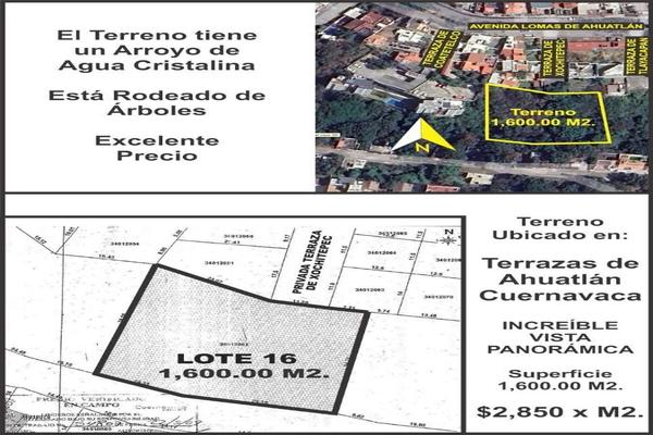 Terreno en venta!!!!! facilidades de pago!!!!! 1600 mt cuadrados en terrazas de ahuatlán tiene un arroyo de agua cristalina, increíble vista panorámica, rodeado de árboles. $2850 x metro cuadrado exce...