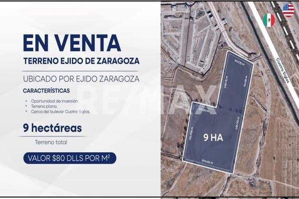 Terreno en venta ubicado en ejido de zaragoza de 9 ha, el precio es de $ 80 dlls por m2. una gran oportunidad de inversion, terreno plano y cerca del blvd. cuatro siglos. (8)