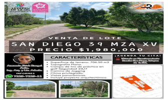 Terreno habitacionalVenta$1,900,000 MXNTerreno en venta disponible en Lote San Diego 61 Mz Xv Sobre Boulevard San Diego con Vistas #XV, Col. El Salitre, Ixtapan de la Sal, México, México, C.P. 51924, ID: 27459621 984 m2 Teléfono