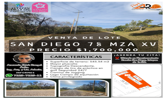 Terreno habitacionalVenta$1,700,000 MXNTerreno en venta, Lote San Diego 78 Mz Xv Fracc Rancho San Diego Edomex Vistas #78 Mz Xv, Col. El Salitre, Ixtapan de la Sal, México, México, C.P. 51924, ID: 27452763 545 m2 Teléfono