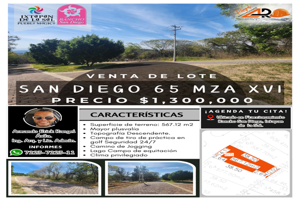 Terreno habitacionalVenta$1,300,000 MXNTerreno en venta disponible en Lote San Diego 74 Mz Xvi Rancho San Diego Edomex Vistas Pano #74 XVI, Col. El Salitre, Ixtapan de la Sal, México, México, C.P. 51924, ID: 27452751 569 m2 Teléfono