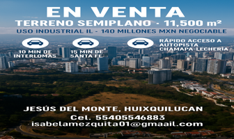 Terreno comercialVenta$145,000,000 MXNTerreno comercial disponible en venta en Calle José Ma. Morelos y Pavón 57 #57, Col. Jesús del Monte, Huixquilucan, México, México, C.P. 52764, ID: 29780479 11500 m2
