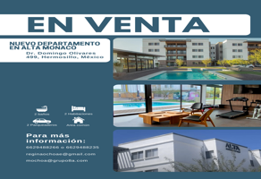 DepartamentoVenta$3,491,774 MXNDepartamento en venta, , Col. Jardines de Mónaco, Hermosillo, Sonora, México, C.P. 83288, ID: 30337121 2 Recámaras 2 Baños 80 m2 Alberca A/C